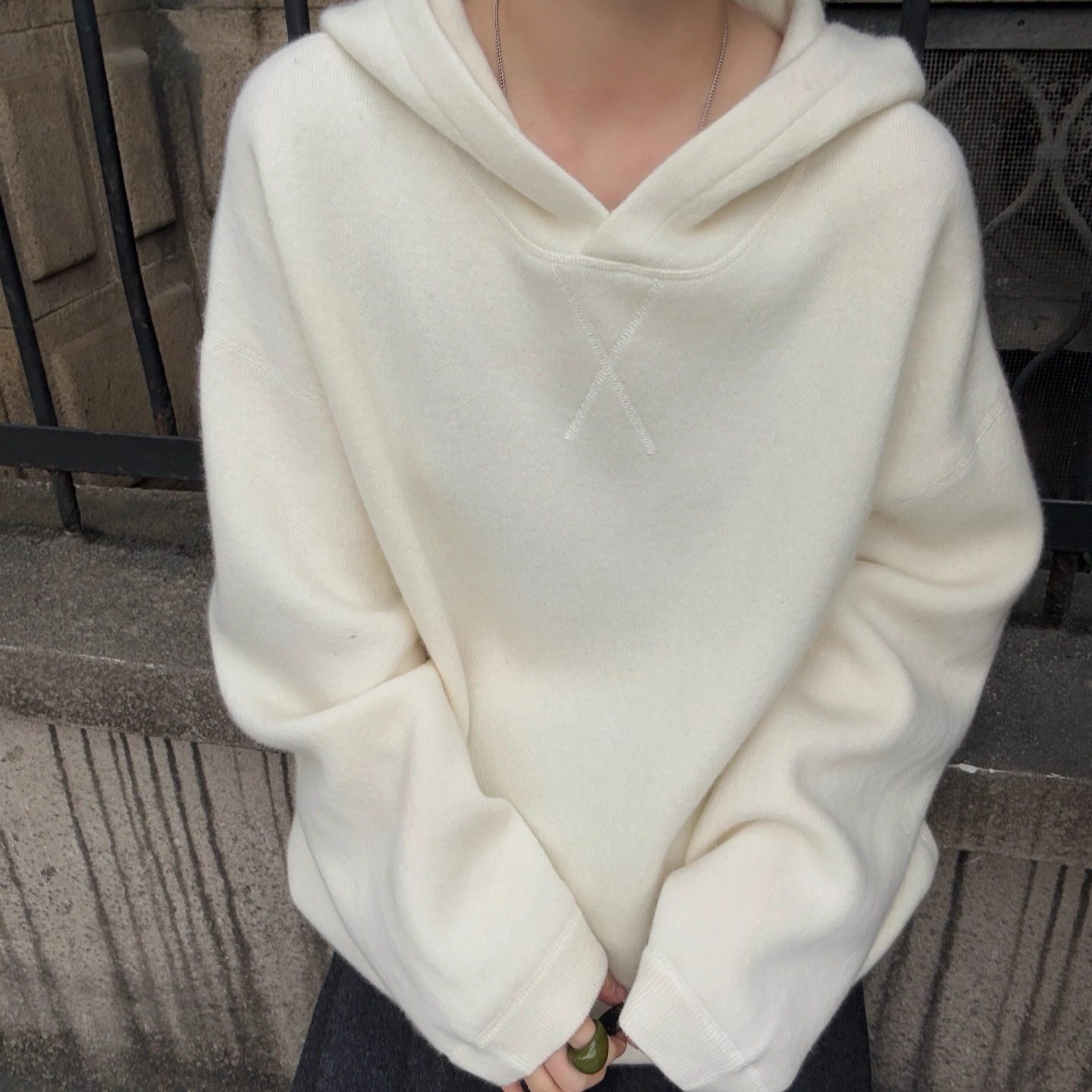 欧洲站2025秋冬新款慵懒风软糯连帽毛衣女宽松套头休闲羊毛卫衣