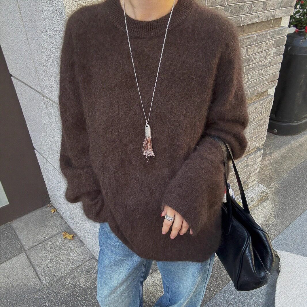 欧洲站2025秋冬新款松弛感宽松软糯拉毛羊绒毛衣女套头长袖针织衫