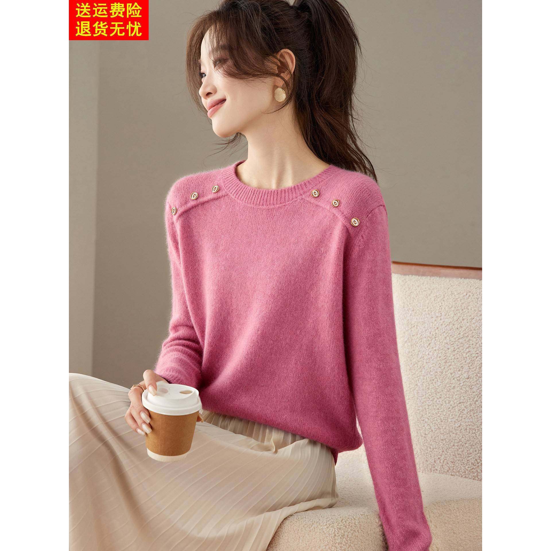 玫粉色软糯套头毛衣女秋冬外穿2025新款超好看宽松短款内搭打底衫