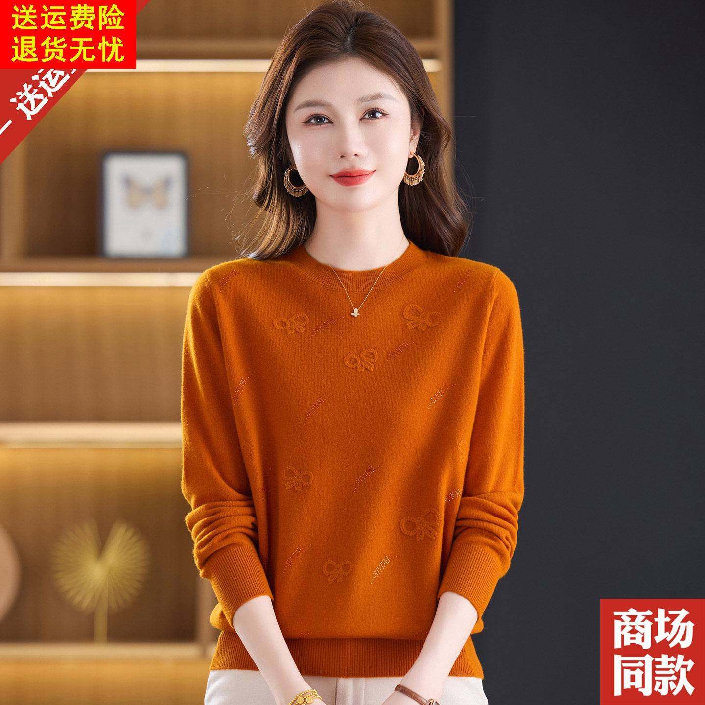时尚100%纯羊毛衫女秋冬新款毛衣宽松洋气中老年妈妈装套头打底衫