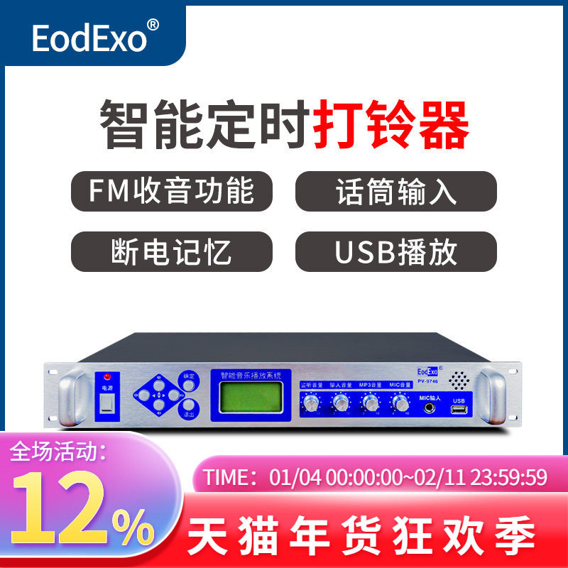 EodExo PV-97定时播放器校园广播系统智能音乐打铃功放主机收录音