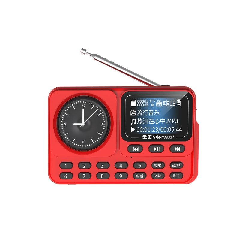 金正时钟收音机MP3老人歌词显示小音响插卡便携式音乐定时播放器
