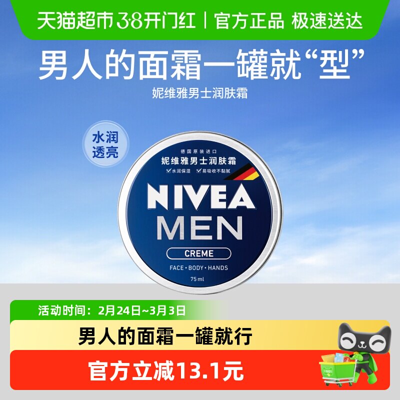 【自营】Nivea/妮维雅男士面霜润肤霜脸部保湿补水小蓝罐擦脸油