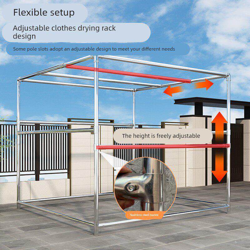 不锈钢晾衣架落地式折叠室内外晒衣架阳台凉衣架可伸缩加粗晾衣杆