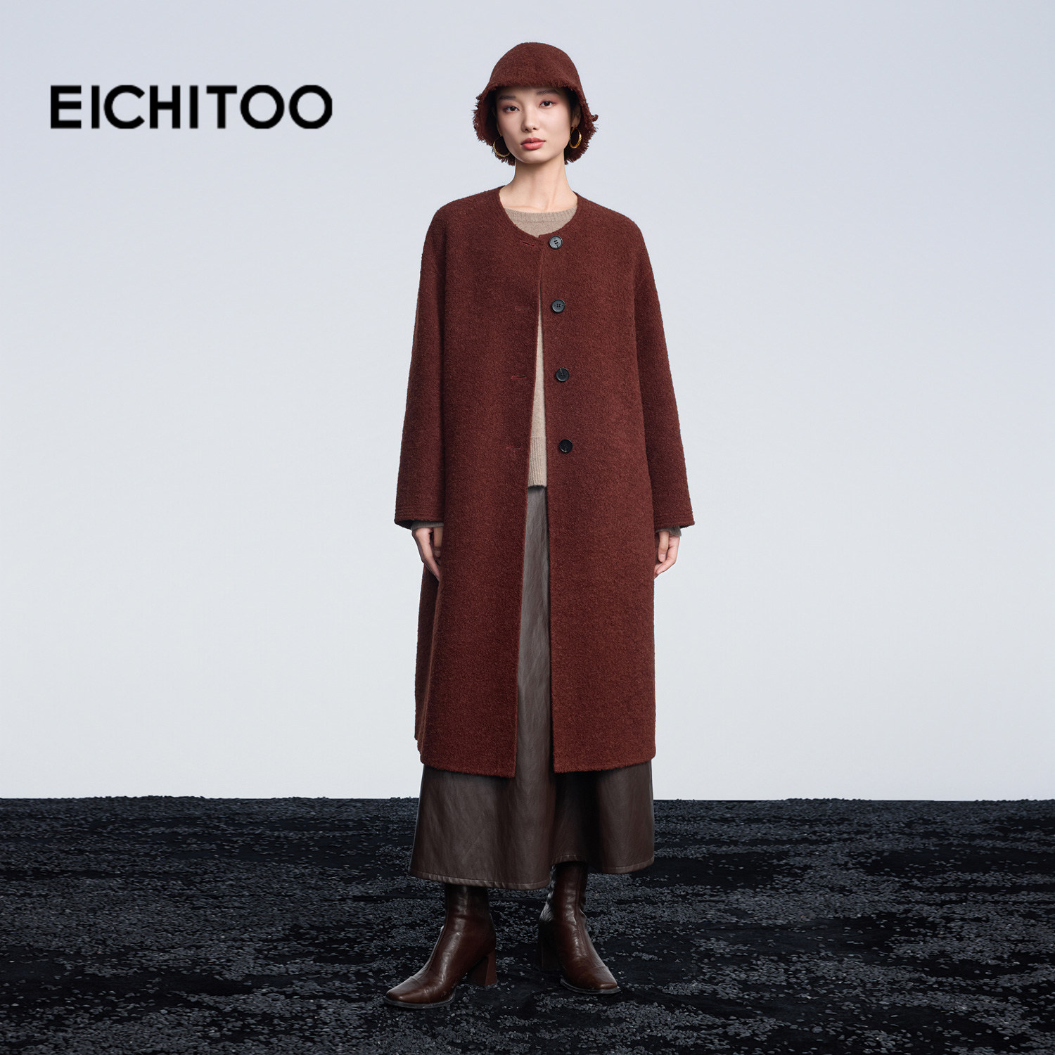 爱居兔含羊驼毛高品质双面呢大衣2025年冬季新款女砖红显白大衣