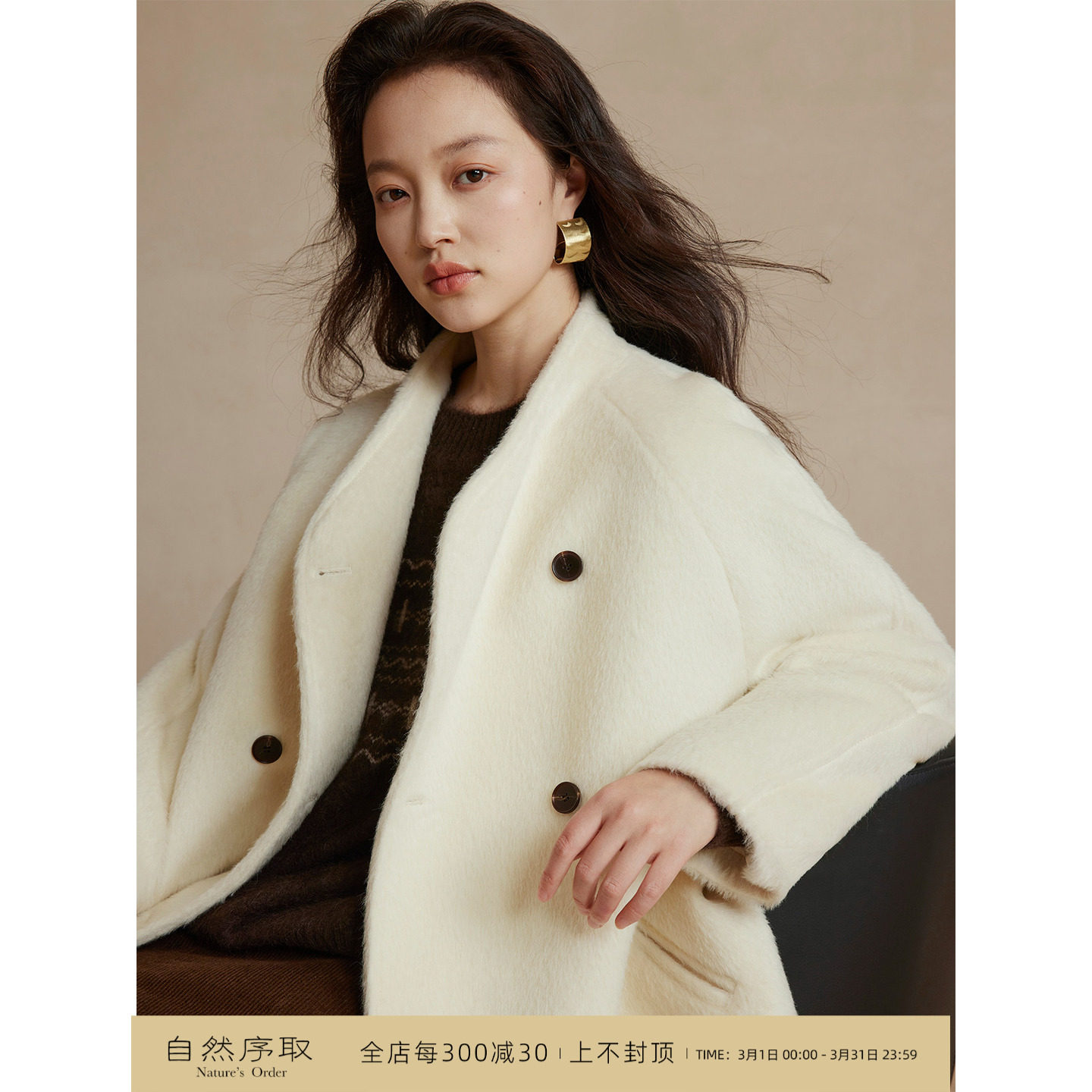 SainteYunne上与原创【雪国公主】高定毛领羊毛外套米白大衣DY869