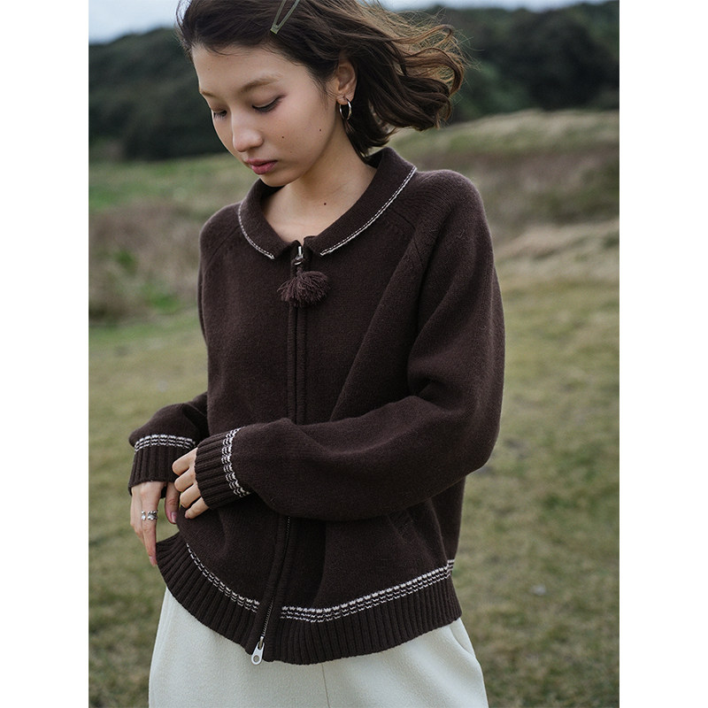 Even Vintage | 羊驼羊毛混纺 经典圆领复古流苏毛衣针织开衫外套