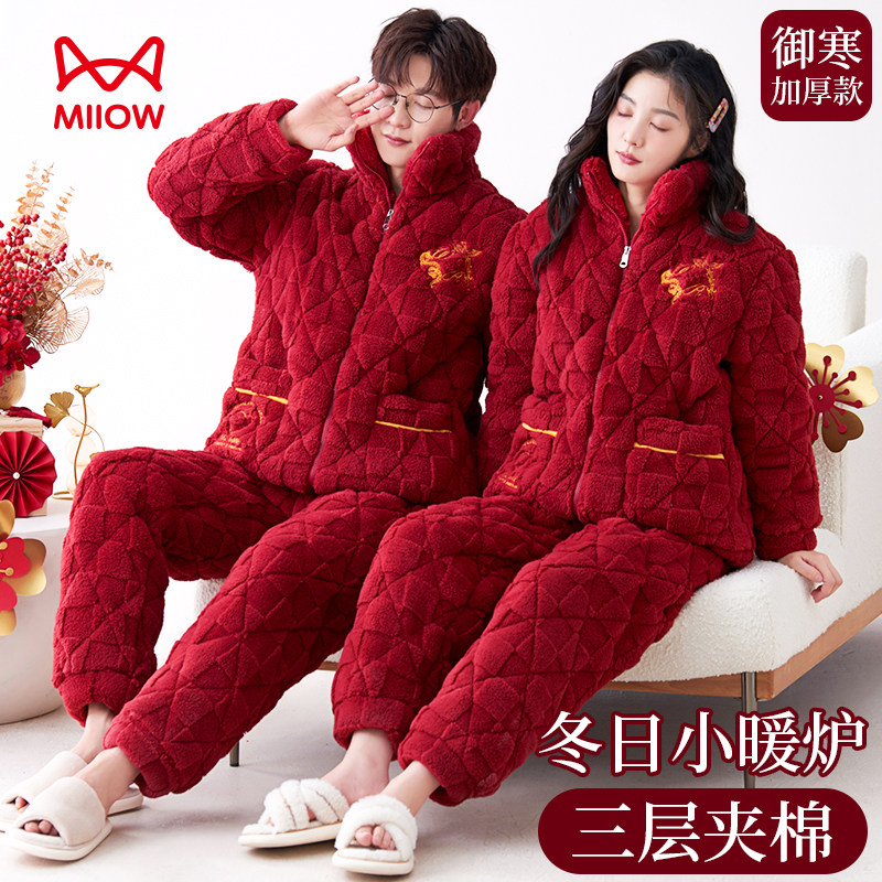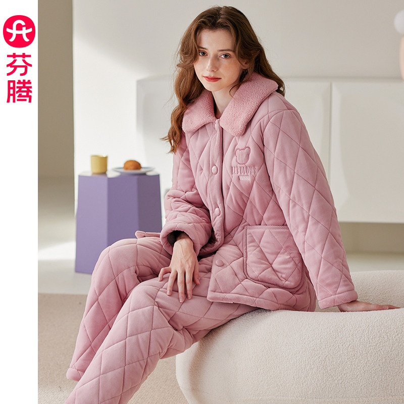 - 睡衣女冬加厚三层夹棉
