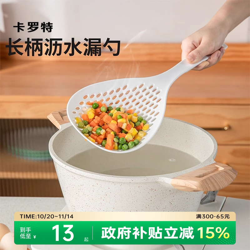 卡罗特大漏勺家用厨房长柄一体成型捞面勺饺子馄饨耐高温沥水捞勺