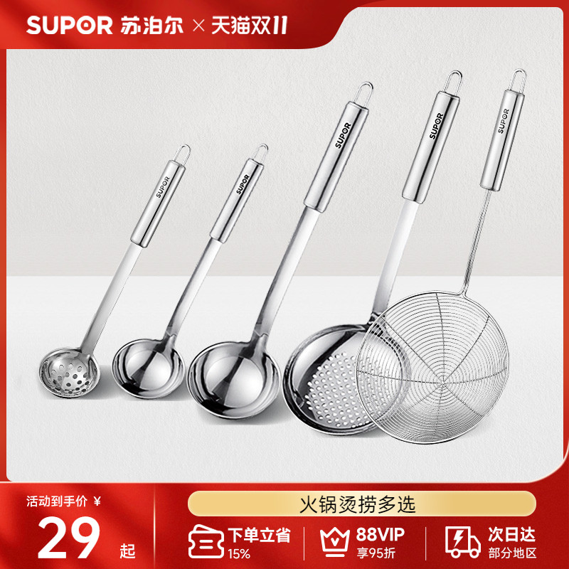 苏泊尔大漏勺不锈钢汤勺笊篱汤捞面勺麻辣烫过滤网捞面条漏勺长柄