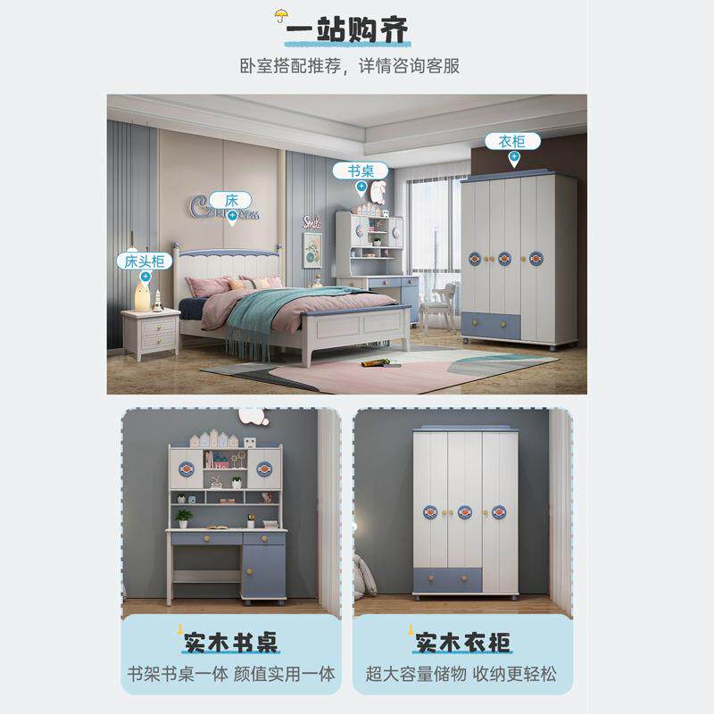 全实儿童衣木柜一体无品牌/女孩公床1.2米单人床床小户型储物主套