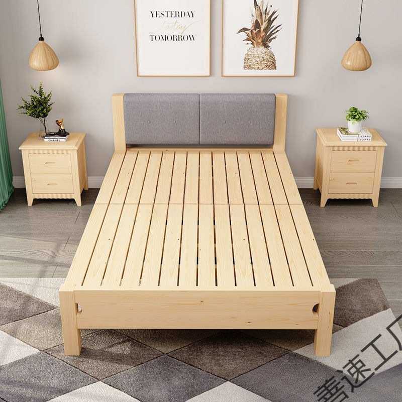 实木床1.2米单人床现代简约1.5米双人床经济型0.8m加软靠折叠床