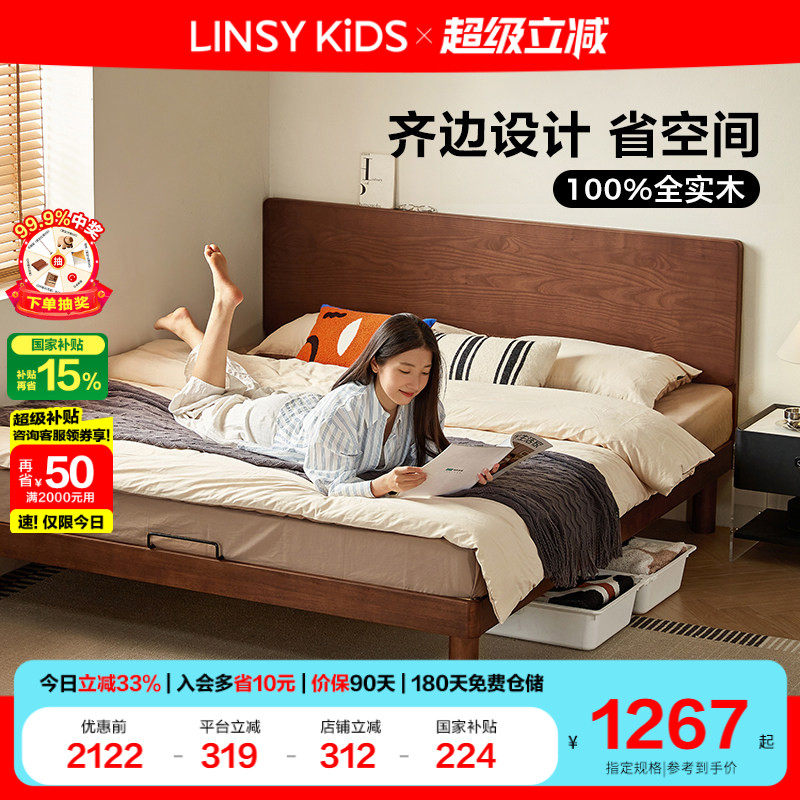 林氏睡眠卧室全实木床1.2米单人床小户型橡木齐边床木业小屿系列