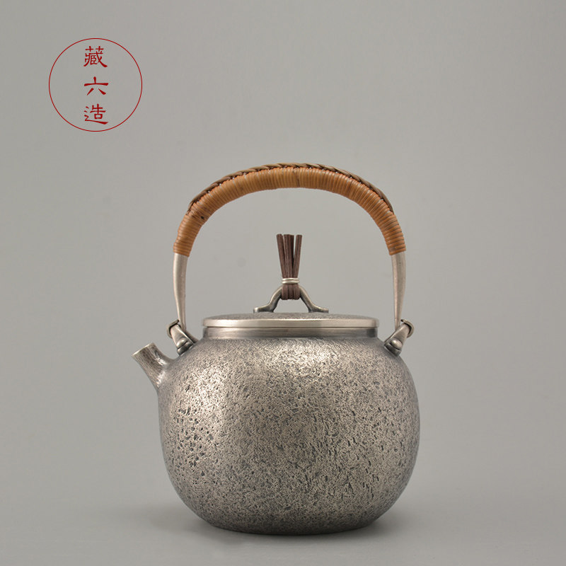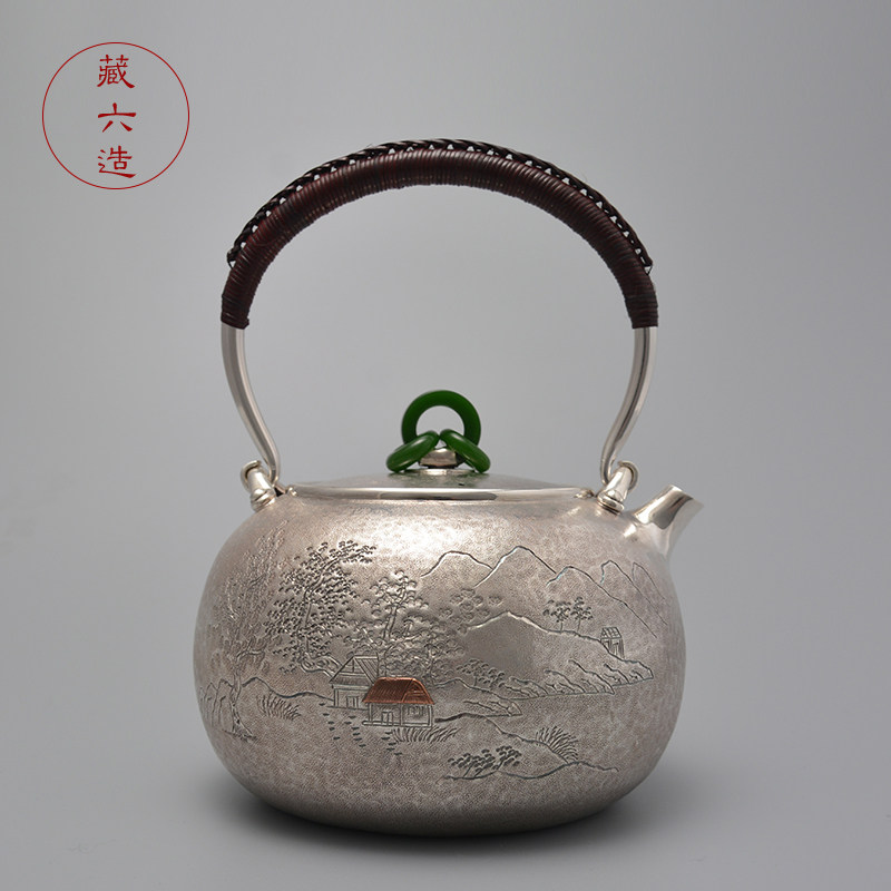 银壶 藏六造纯银999烧水壶泡茶壶纯手工一张打仿古银茶壶家用煮茶