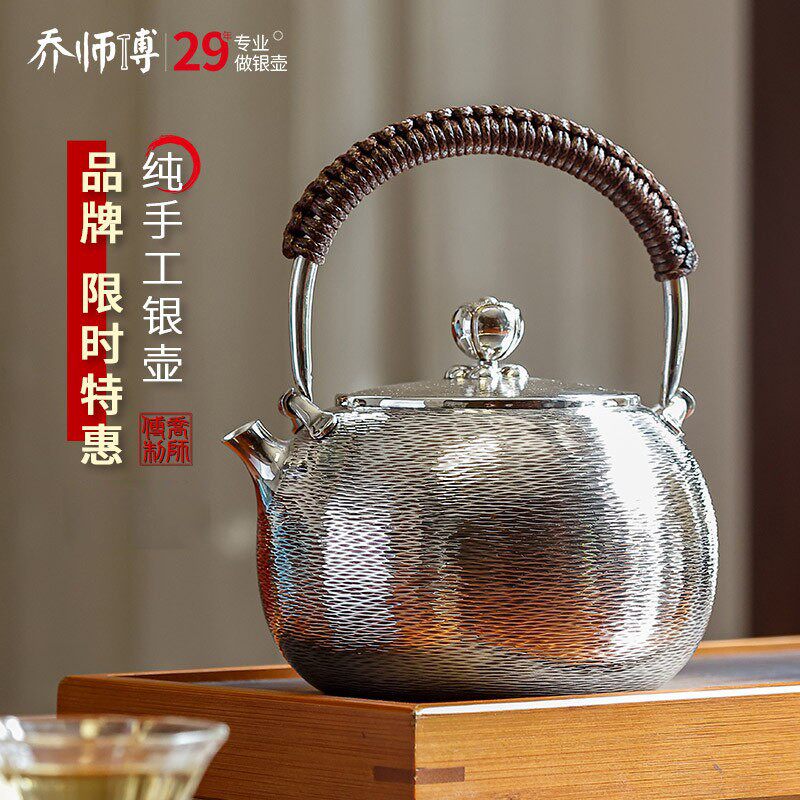 手工银壶999纯银泡茶壶茶具套装烧水壶家用高端足银小茶壶银茶具