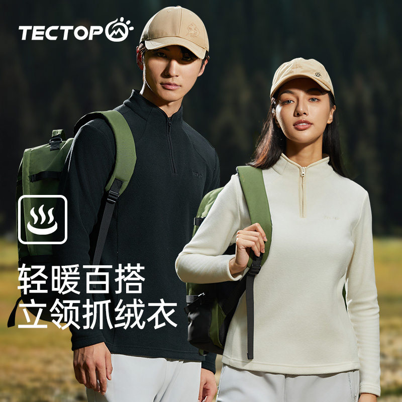 TECTOP探拓休闲抓绒衣新款加绒加厚卫衣男女套头半开衫摇粒绒外套