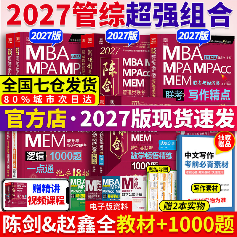 管综2027陈剑数学高分指南赵鑫全逻辑精点写作分册MBA MPA MPAcc MEM199管理类联考综合能力27考研教材1000题公共硕士26版资料2026