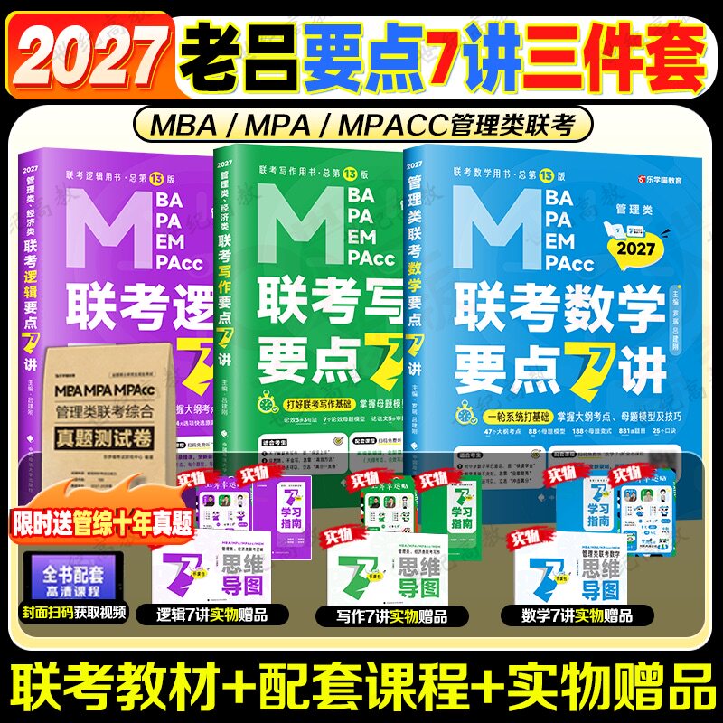 官方店】2027老吕逻辑要点7讲+母题800练199管理类联考mba/mpa教材历年真题精解管综考研数学7讲老吕写作要点7讲在职专硕396经济类