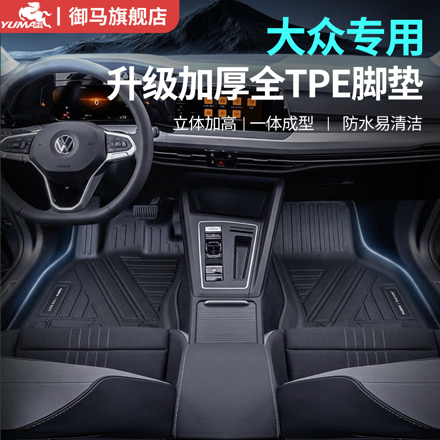 御马TPE脚垫适用大众迈腾高尔夫速腾ID46帕萨特途观L探岳汽车脚垫