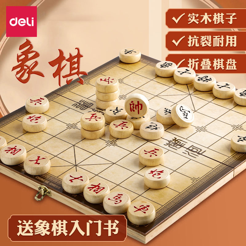 得力中国象棋成人高档实木象棋大号带折叠棋盘便携式比赛专用正品