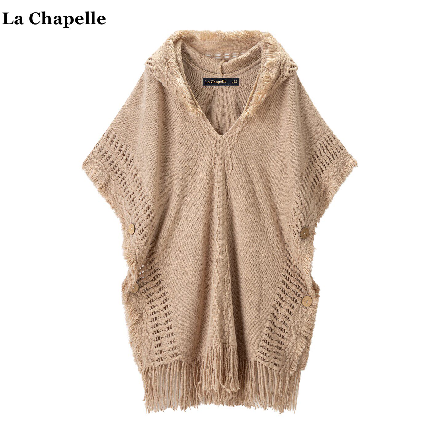 拉夏贝尔/La Chapelle纯色连帽斗篷披肩女旅游外搭镂空针织衫披风