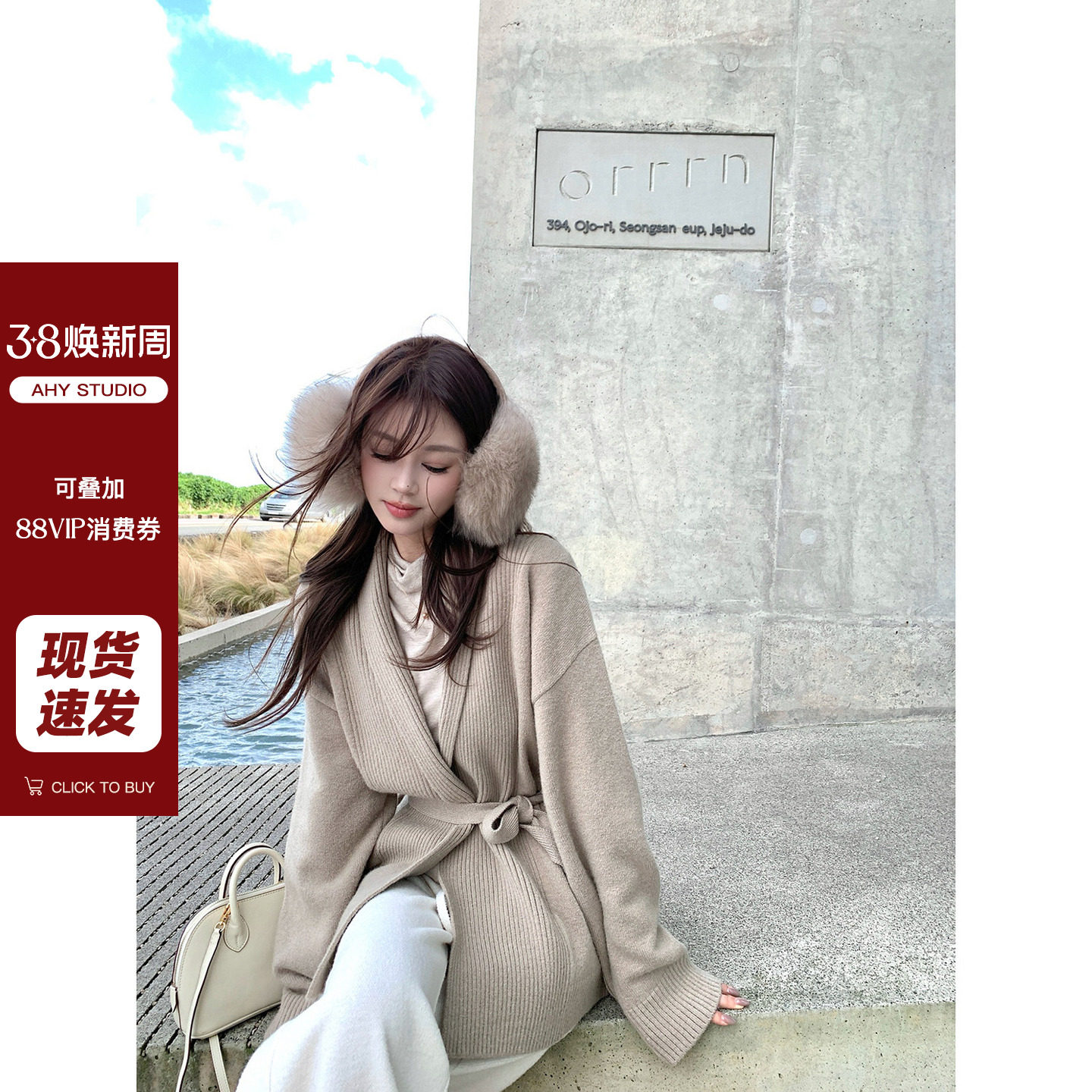 现货【AHY】暖调row风 浴袍款腰带简约披风外套针织长开衫女新品