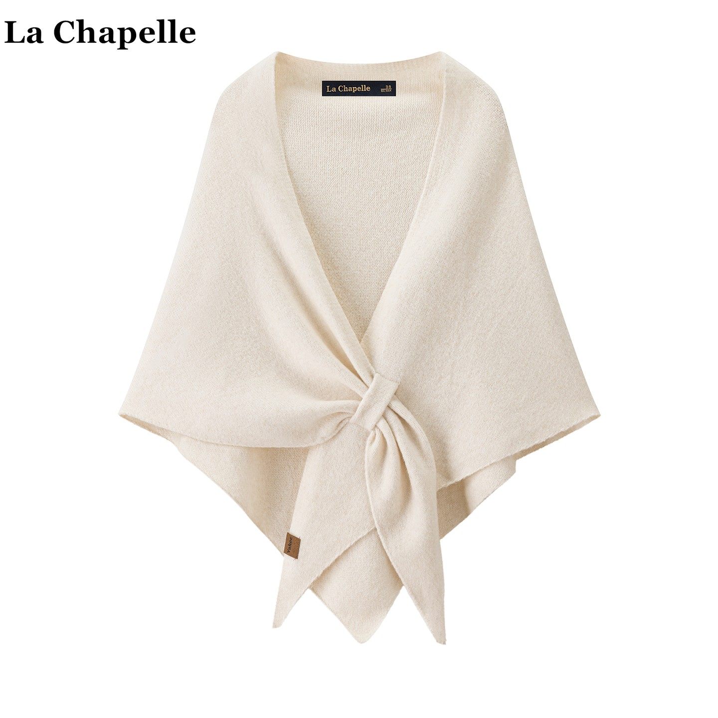 拉夏贝尔/La Chapelle纯色交叉款针织三角披肩女秋季外搭披风围巾