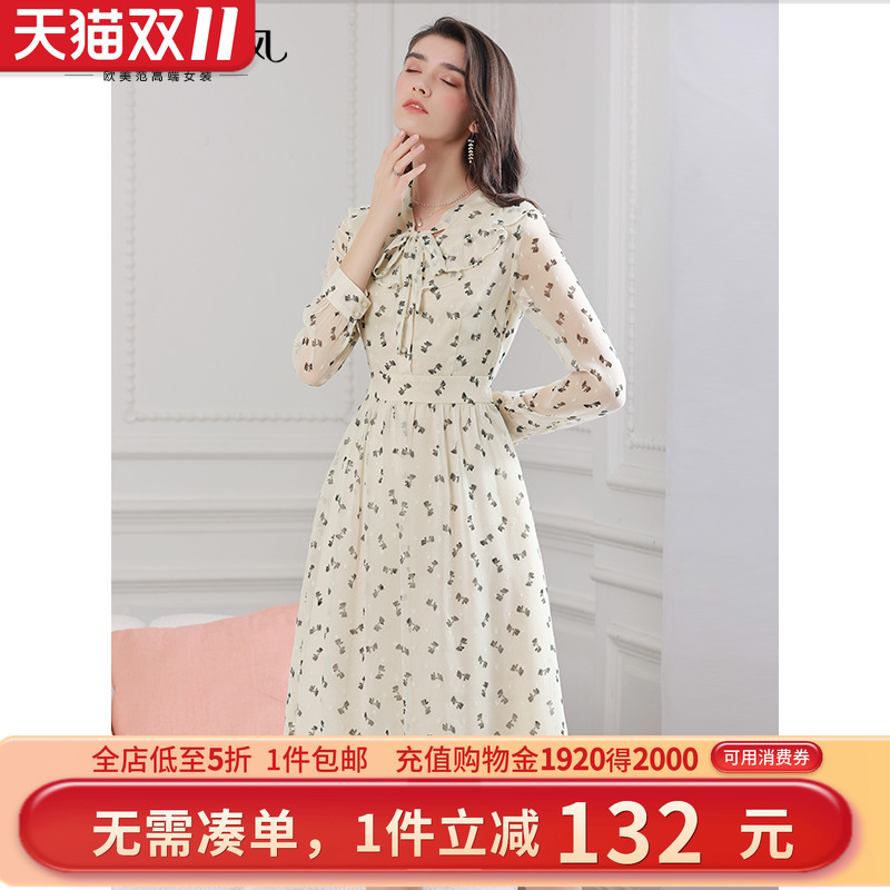 未风小个子裙子女秋新款女装气质显瘦早秋长袖雪纺连衣裙法式长裙