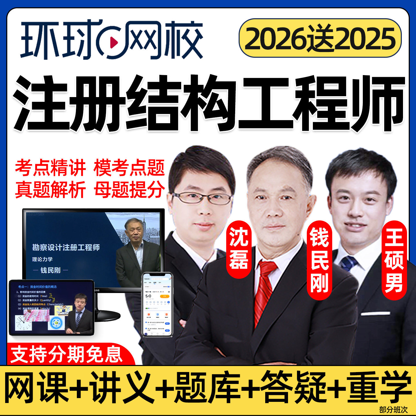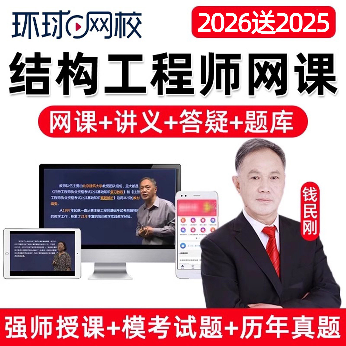环球网校2026钱民刚注册一级结构工程师基础专业考试网课精讲视频电子课件题库课程历年真题理论材料流体力学计算机应用电气与信息