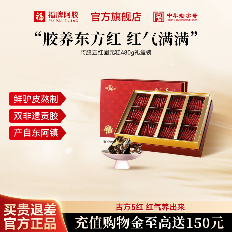 福牌阿胶五红固元糕480g即食阿胶糕官方旗舰店正品过节礼盒送长辈