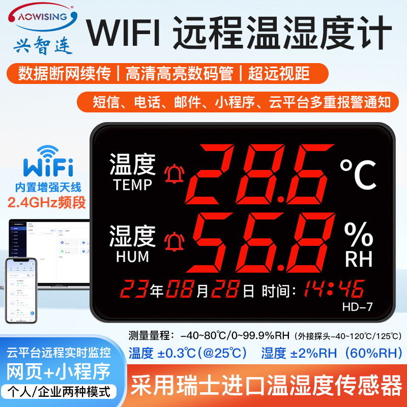 无线wifi温湿度记录仪手机远程监控水温计工业机房冷库报警传感器
