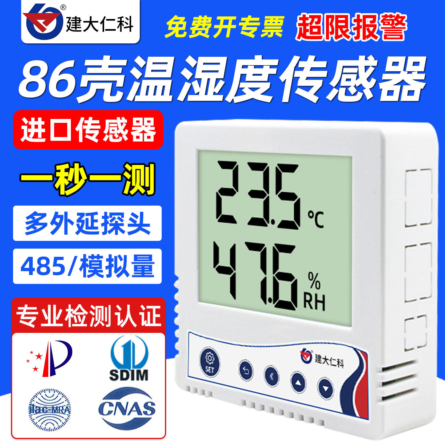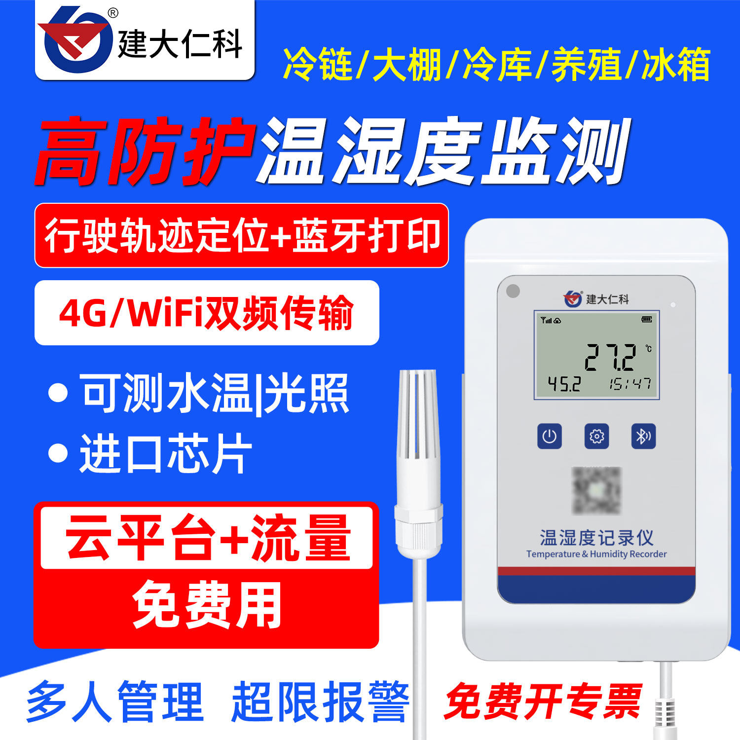 建大仁科温湿度记录仪自动药店gsp冷链实验室高精度工业温湿度计