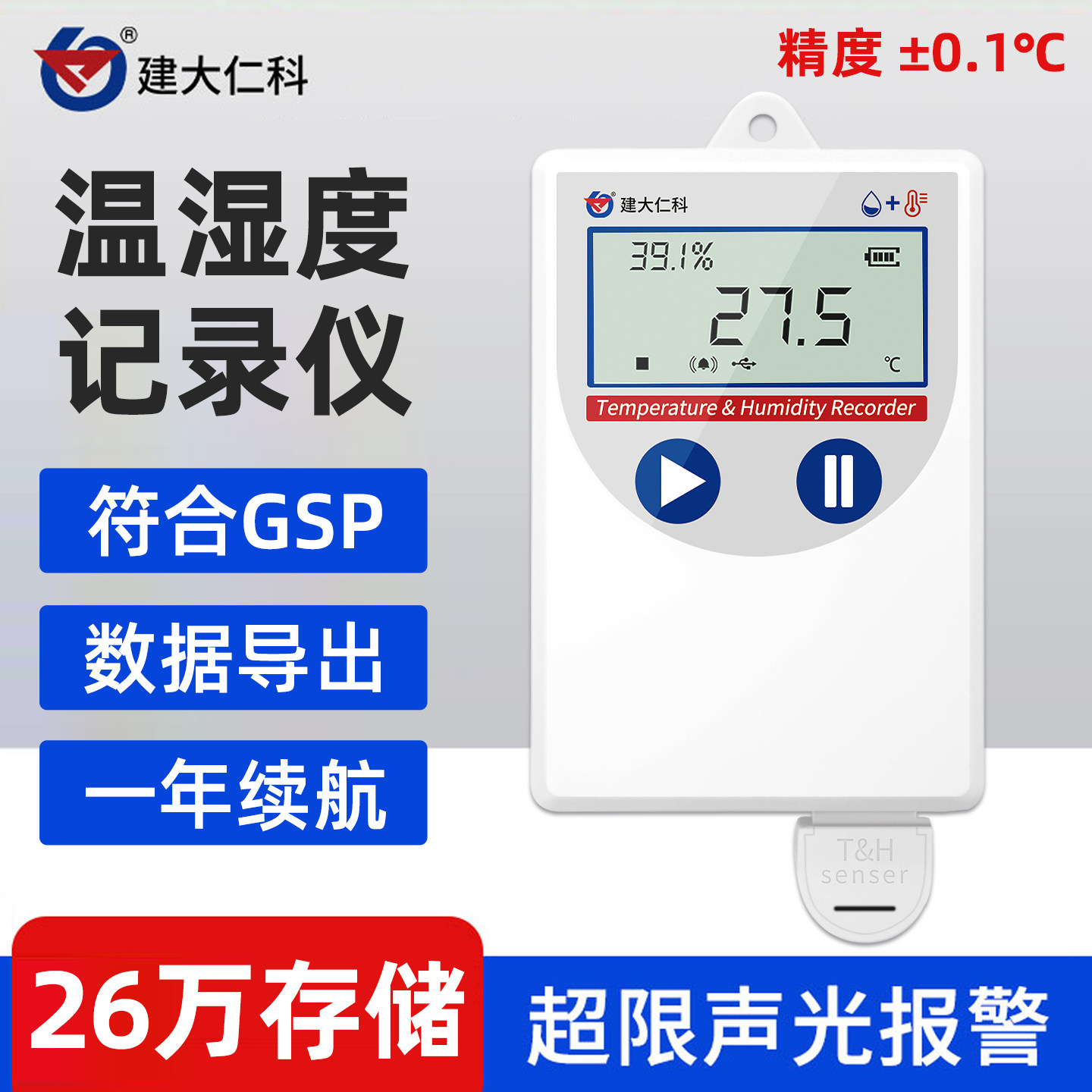 建大仁科温湿度记录仪GSP自动高精度冰箱冷链药店USB工业温湿度计