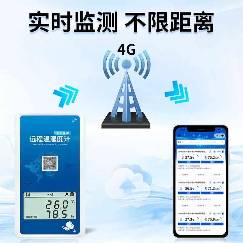 4G温湿度传感器手机远程告警温湿度记录仪4G温湿度计大棚养殖机房