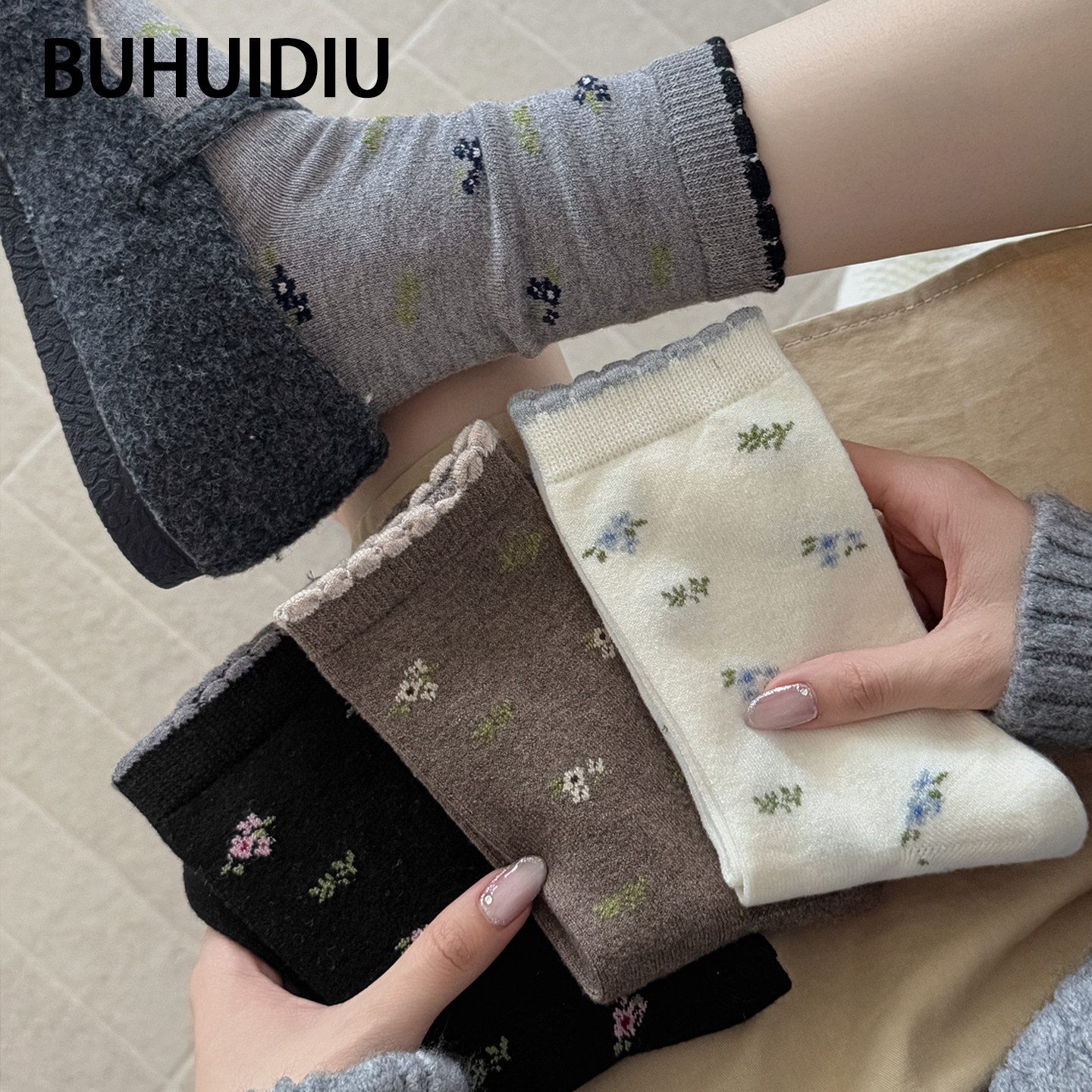 不会丢的袜子 花边碎花中筒袜女秋冬季保暖羊毛袜堆堆袜外穿无骨