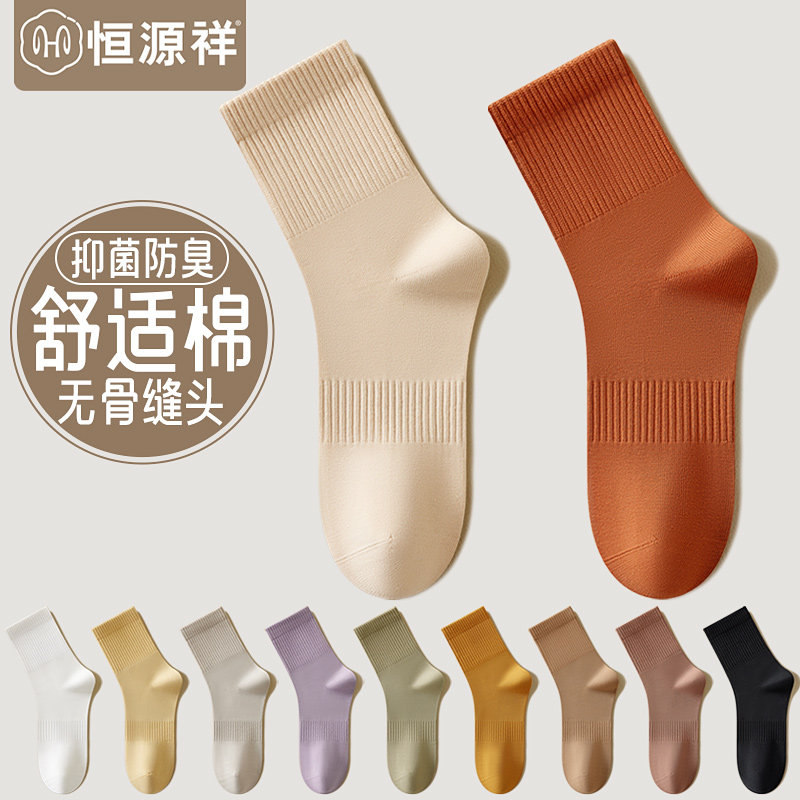 100%纯棉袜子女款秋冬中筒袜抗菌防臭2025新款爆款无骨白色堆堆袜