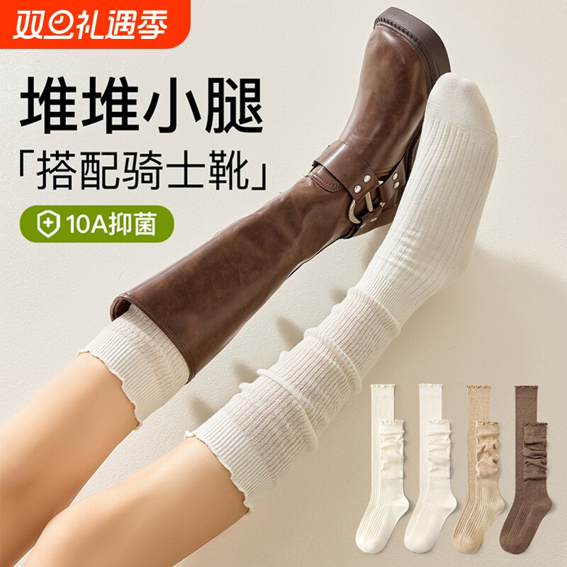袜子女款秋冬季纯棉白色中筒无骨堆堆袜2025新款勃肯鞋月子长筒袜