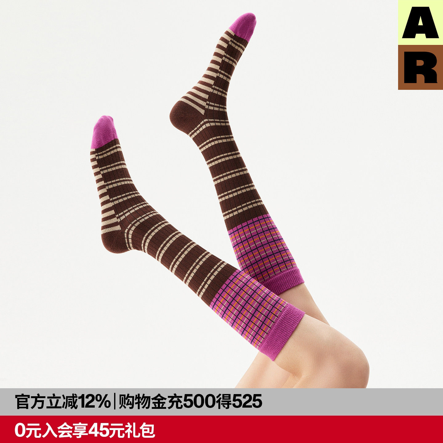 AR复古条纹变奏小腿袜2025秋冬新款长筒袜显瘦美腿高筒袜堆堆袜女