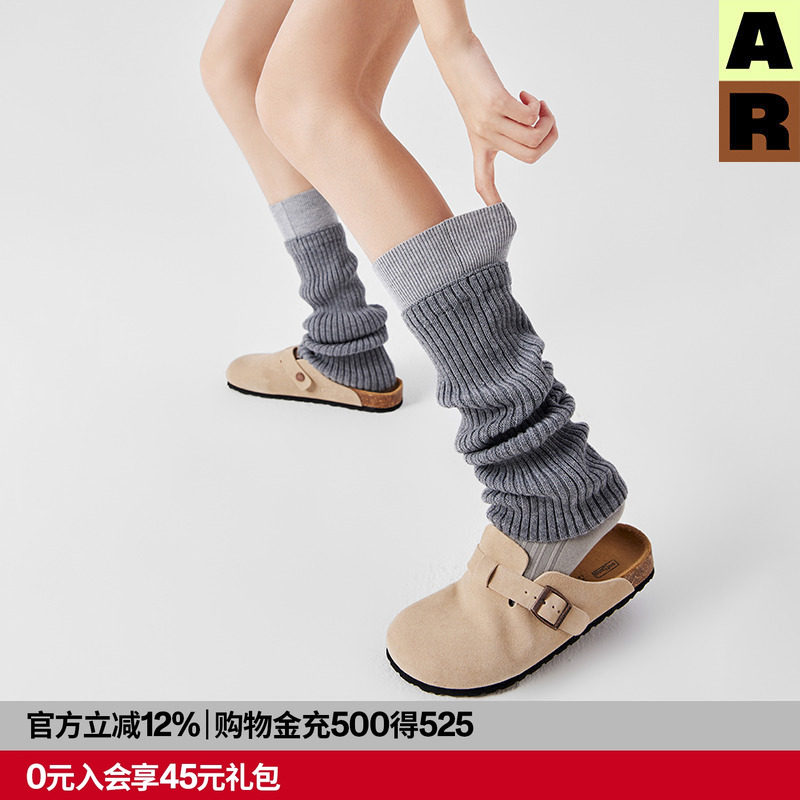 AR灰色袜套配雪地靴袜堆堆袜羊女毛保暖堆堆袜护膝腿套勃肯鞋袜冬