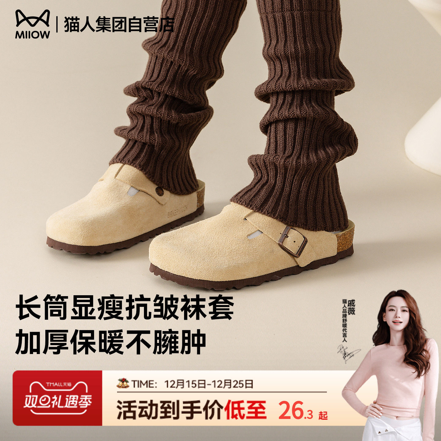猫人新款袜套小腿袜堆堆袜子女秋冬季叠穿针织棕色配靴子长筒腿套