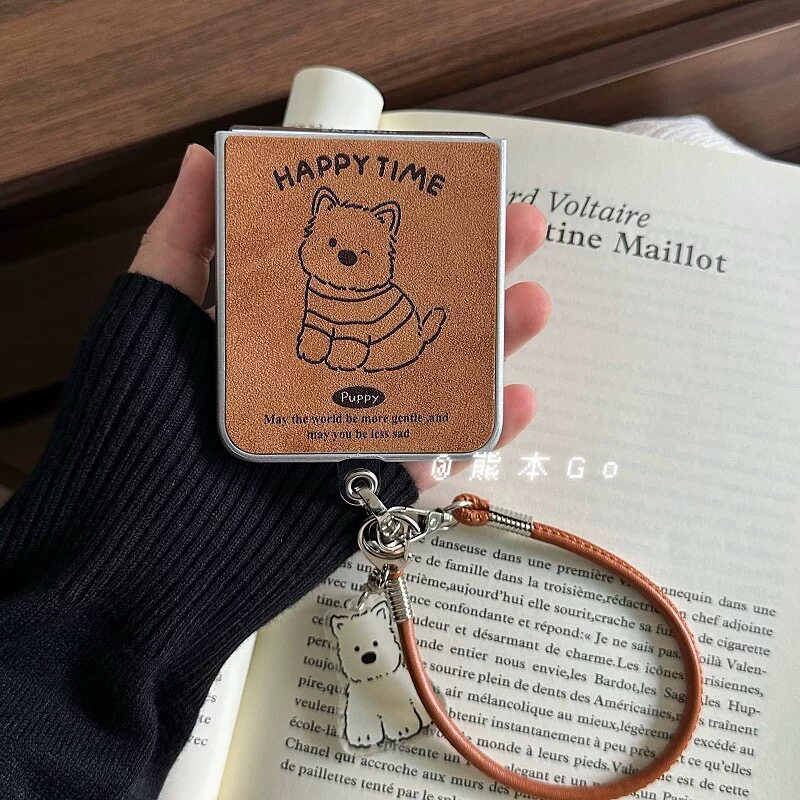 秋冬可爱小狗适用三星ZFLIP6/5/4手机壳华为P50pocket2 S保护套OPPO n3flip小米Mix毛球挂绳款VIVOx荣耀Vflip