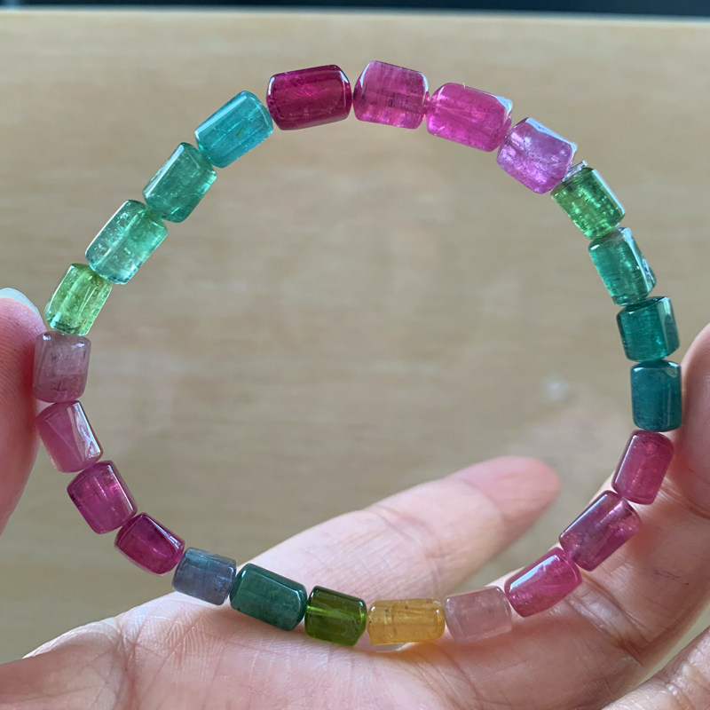 巴西糖果碧玺手链女士情侣单圈手串老矿料散珠彩虹旺夫石礼新多圈