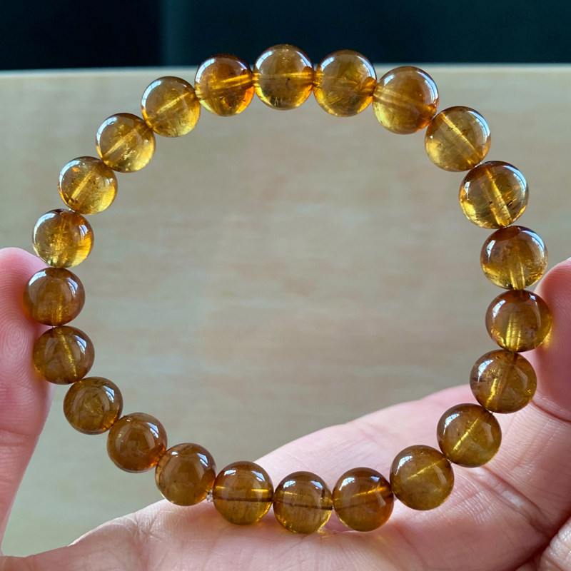天然巴西焦糖黄碧玺手链老矿佛珠手串甜美饰品生日礼物情侣款配饰