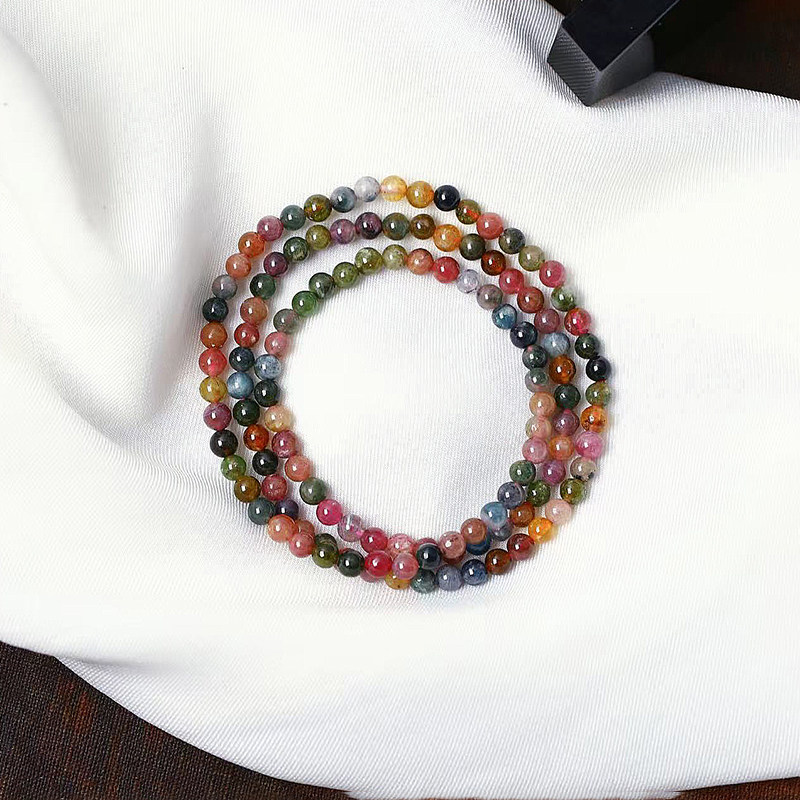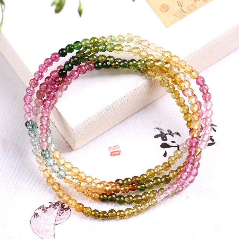 天然巴西碧玺手链女款多圈彩虹色三圈手串水晶单圈饰品正品散珠子