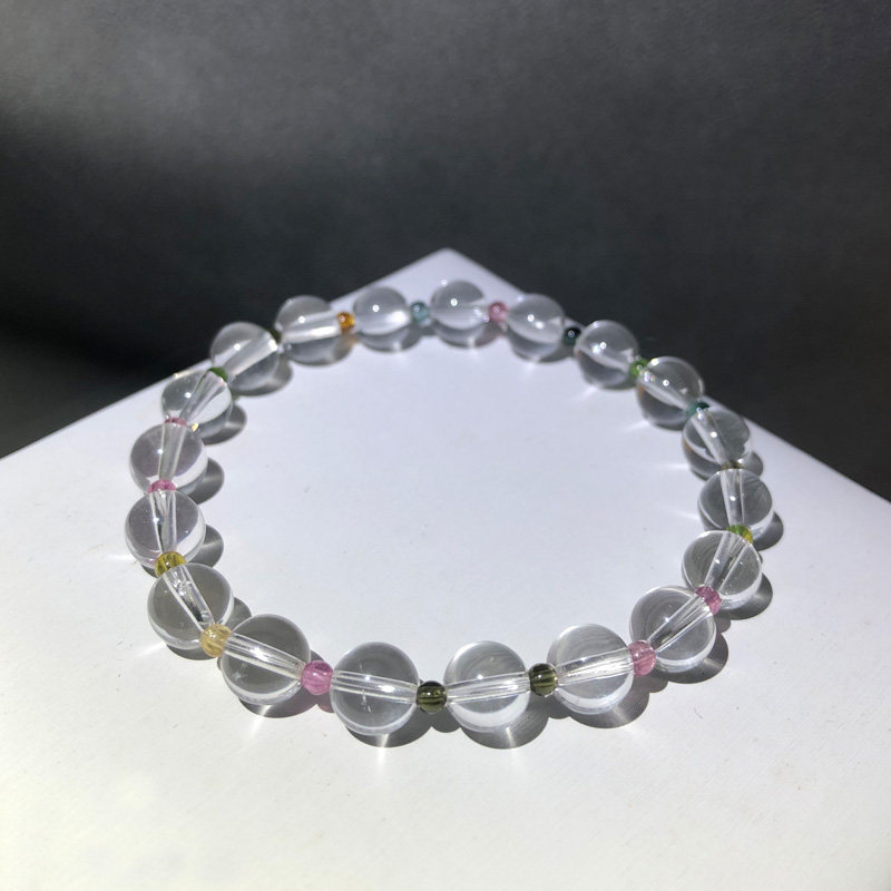 PLSTONE普琳丝天然水晶高端透巴西老矿糖果彩色碧玺手链手串女