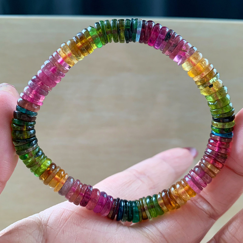 天然碧玺盘珠水晶手链饰品巴西老矿彩虹糖果渐变色手串单圈送礼物