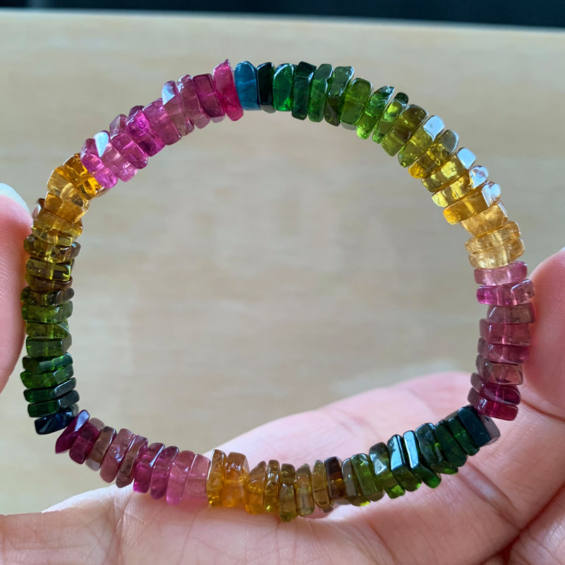 珂拉咪/K14 天然巴西碧玺手链女 彩虹碧玺手串转运饰品 一物一图