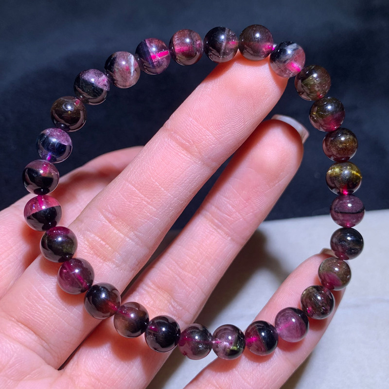 天然老矿西瓜双色碧玺手链巴西手串情侣圆珠单圈水晶饰品送女礼物