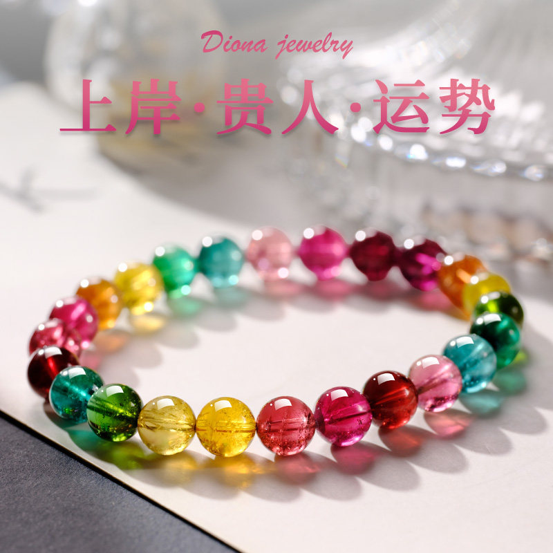 碧玺手链女东海水晶玛瑙翡翠玉石巴西彩虹糖果粉绿蓝红色宝石手串
