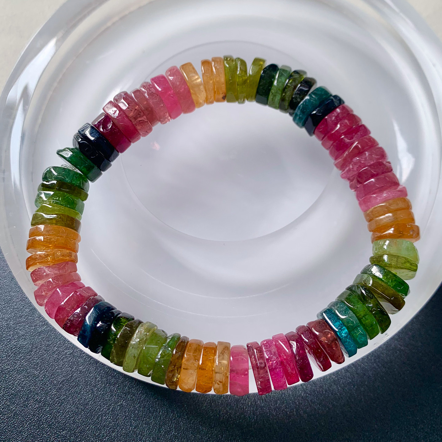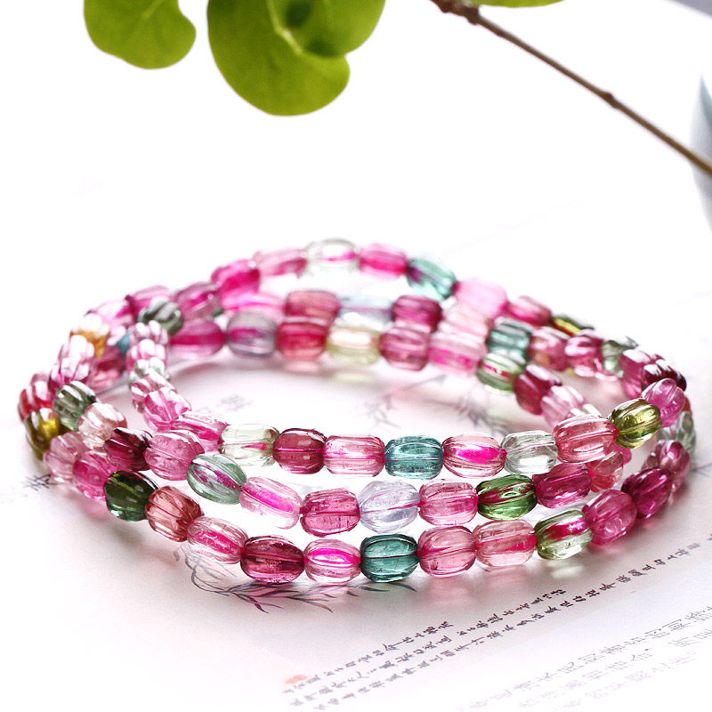 天然碧玺回纹珠单圈手链巴西彩虹糖果色老矿碧玺桶珠送礼情侣饰品